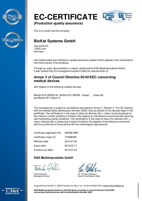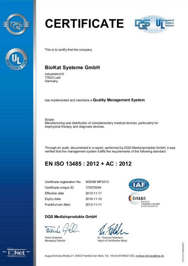 Jest to urządzenie produkcji niemieckiej posiadające certyfikat jako urządzenie medyczne zgodne z Dyrektywą UE 93/42/EWG dla urządzeń medycznych i spełniające wszelkie wymagania i najwyższe standardy jakości.
